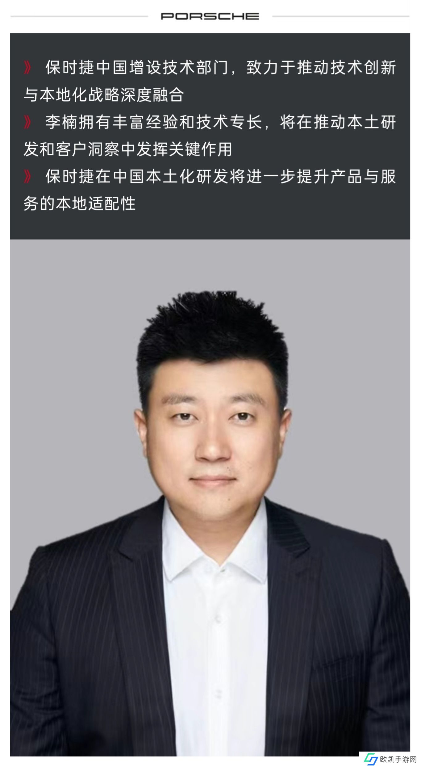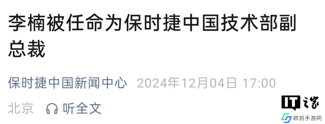 本站 12 月 4 日消息,保时捷中国今日宣布,增设技术部门,任命李楠为保时捷中国技术部副总裁。