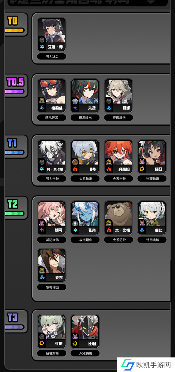 T0.5:仅次于T0梯队,这个梯队的角色本身强度不低,但是不一定版本利好,同样可以作为阵容的构建核心。