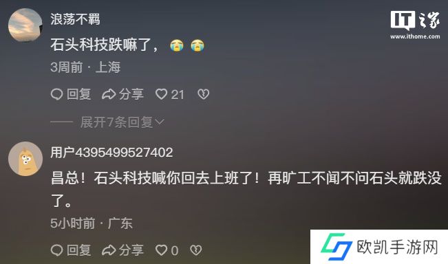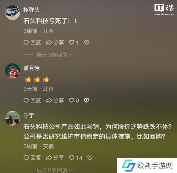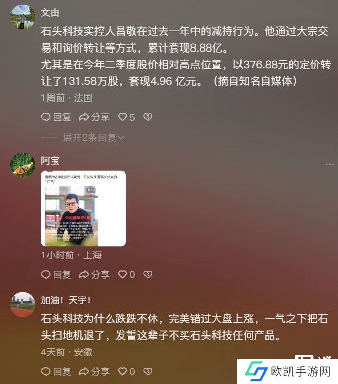 财报发布后,石头科技股价开始下跌,一度跌幅达 30%,该事引起了众多投资者不满,大量“骂声”快速攻陷了石头科技创始人昌敬的个人账号评论区。