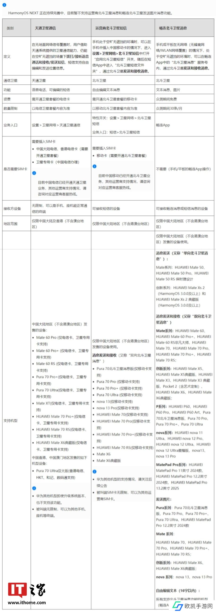 华为官网现更新了各机型卫星功能适配情况,本站注意到,自由编辑文本功能已适配所有支持畅连北斗卫星消息的机型。目前畅连北斗卫星消息功能适配情况如下: