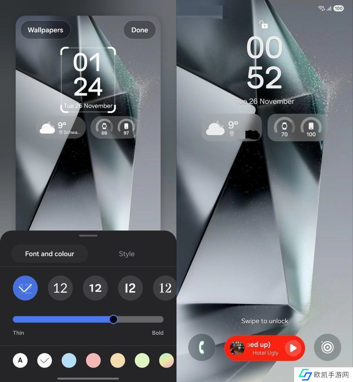 根据曝光的截图,用户在 One UI 7.0 更新中,可以进一步自定义锁屏时钟,调整颜色、字体样式、大小等等,本站附上相关截图如下: