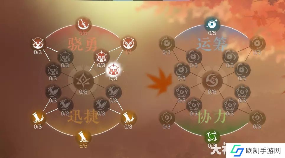 1、单人选择左边骁勇/迅捷加点。组队队伍中有一个人选择右边协力/运筹加点。