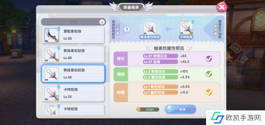 同品质装备之间的精炼等级是可以继承的,精炼继承分为普通继承以及高级继承。