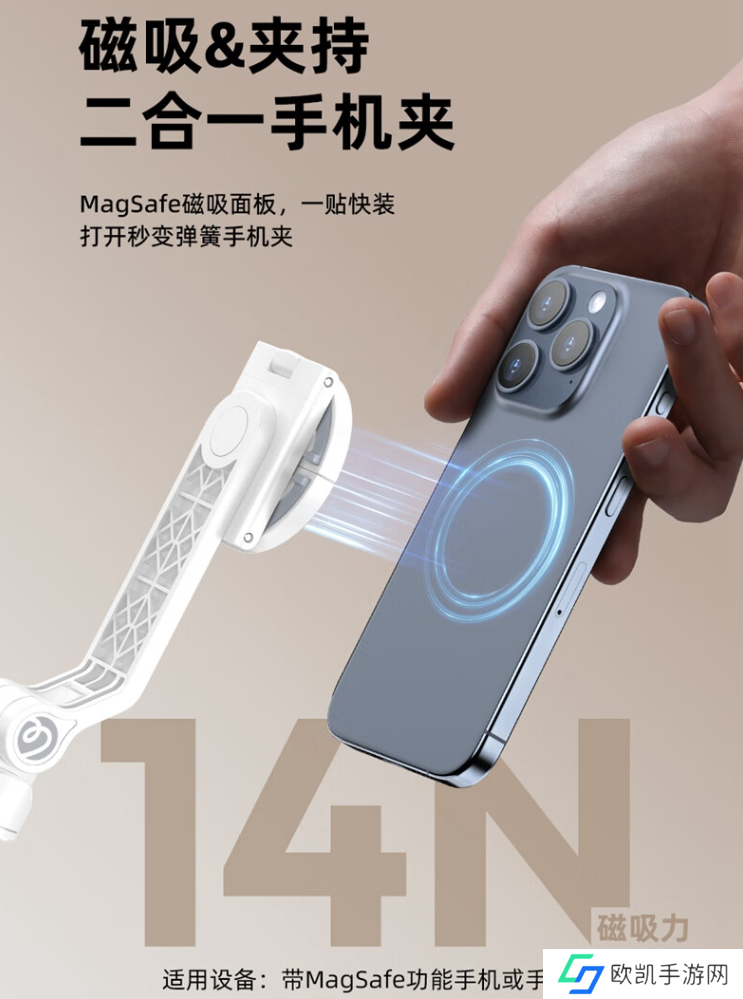 据介绍,优篮子俯拍自拍杆 TT88 的手机夹拥有 MagSafe 磁吸面板,提供磁吸 / 夹持两种连接方式。其中,磁吸面板吸力约 14N,手机夹支持 5.6cm-9cm 宽度范围调节(适用 4.7 寸-7 寸手机)。