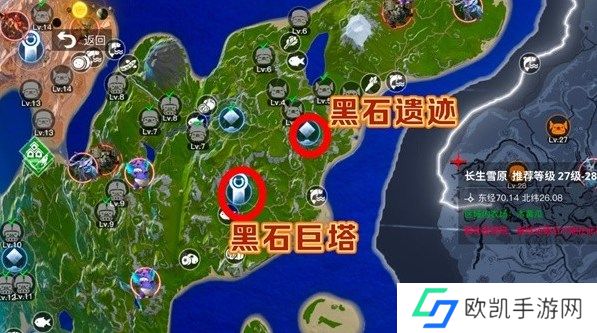 2、之后来到黑石巨塔底下点击产生共鸣,之后即可解锁地图,并显示出黑石遗迹位置。