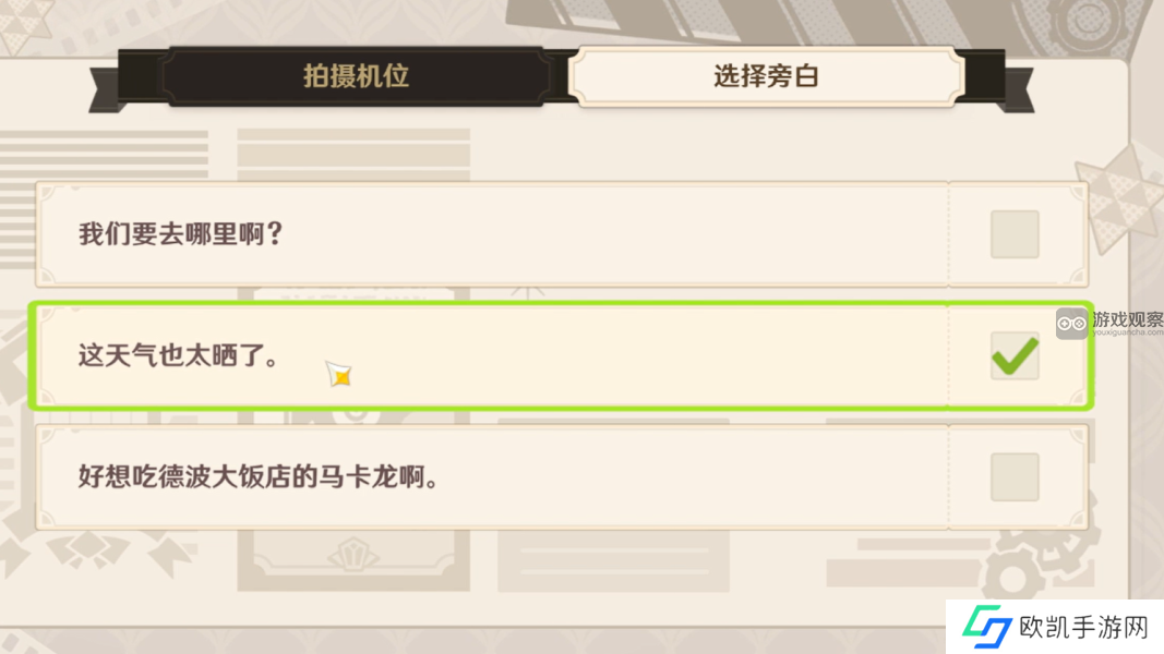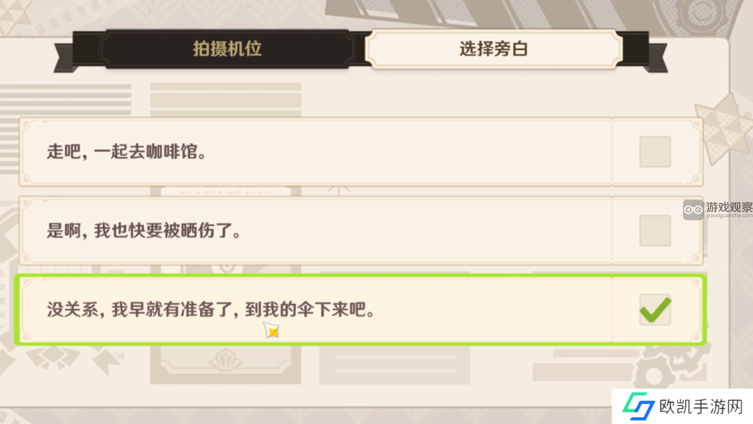 原神烈日下的等待是巧像入帧活动第二关,烈日炎炎之下,主角娜维娅正在等待与自己的朋友派蒙会面,后者难以忍受酷晒,无精打采地出现在了主角的视野中。主角拿出准备好的遮阳伞与墨镜,示意朋友一同躲避太阳。熟悉了剧情后就让我们一起看看原神烈日下的等待正确攻略吧!