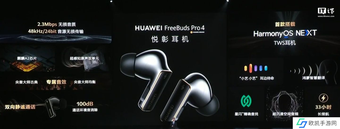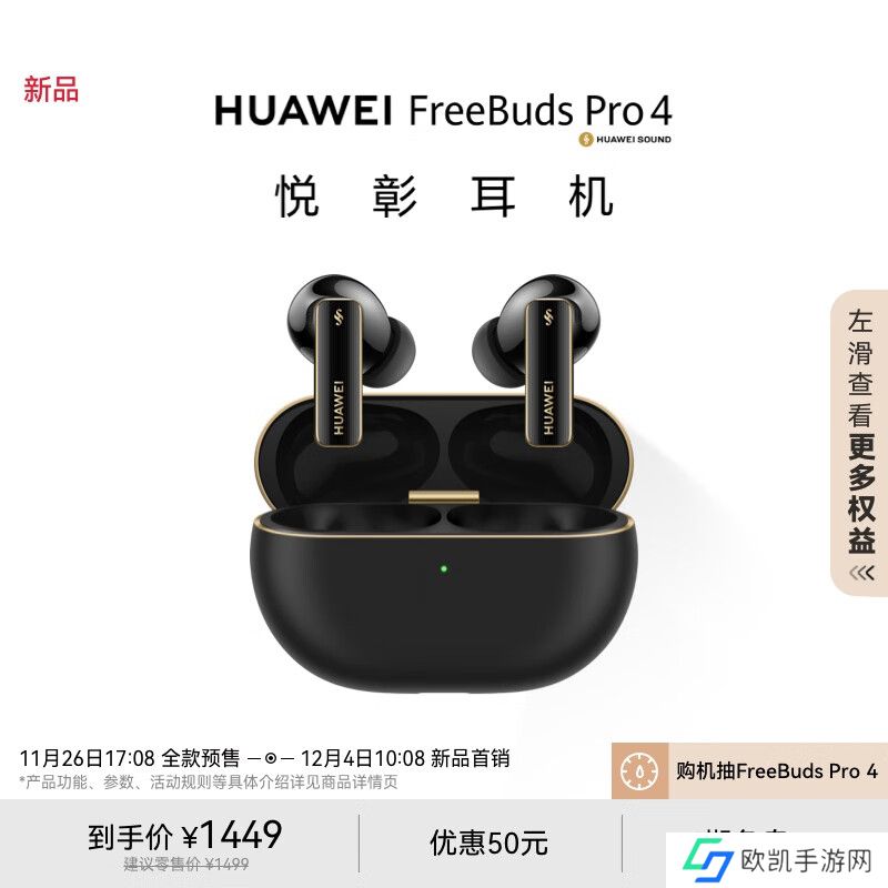 本站从发布会获悉,华为FreeBuds Pro 4 耳机标称续航 33 小时,定价 1499 元,赠送一个月华为音乐会员。