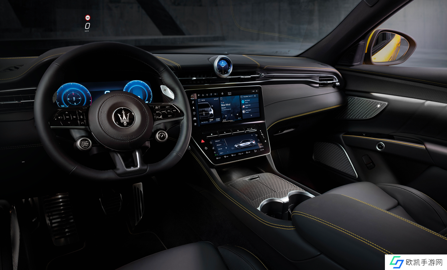 内饰部分,新款玛莎拉蒂 Grecale 提供 12.3 英寸中控屏、8.8 英寸空调控制屏、360 度全景影像、手机无线充电、抬头显示、14 个扬声器 Sonus Faber Premium 音响系统等配置。