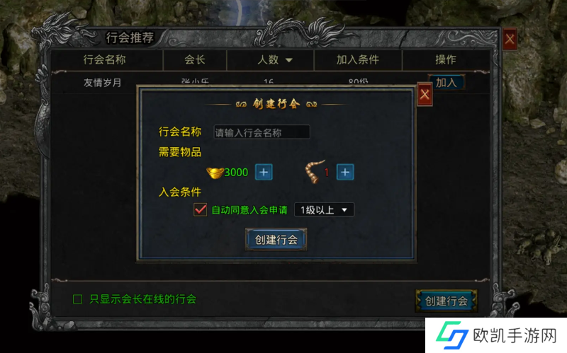 4. 创建成功: 当你完成上述步骤并确认无误后,就可以成功创建行会了。此时,你将成为这个行会的会长,可以开始组织和管理行会的事务了。