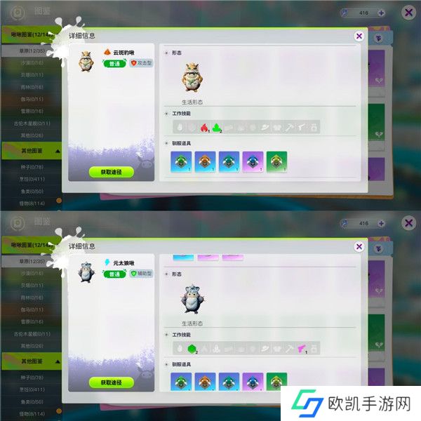 重点抓捕挖矿啾啾和制球啾啾,它们将是你前期探险的得力助手。元太郎啾擅长挖矿,云斑豹啾则精通制球,它们的能力将大大提升你的采集效率。