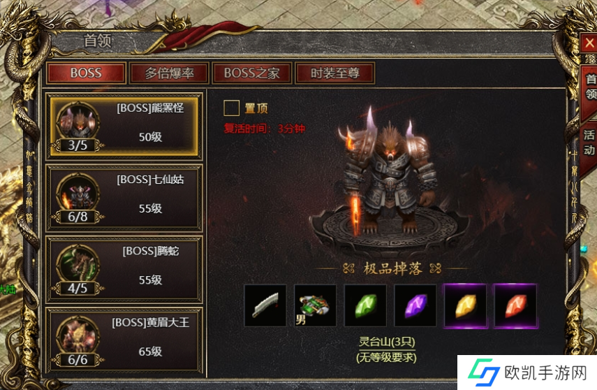 3. 圣域地图BOSS: