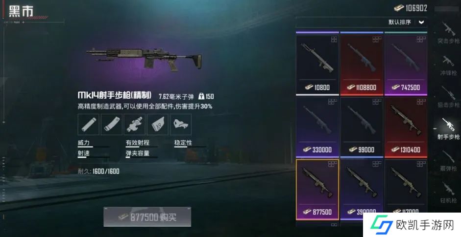 副武器推荐Mk14,这把枪是射手步枪,调整为自动开火模式时伤害非常高。