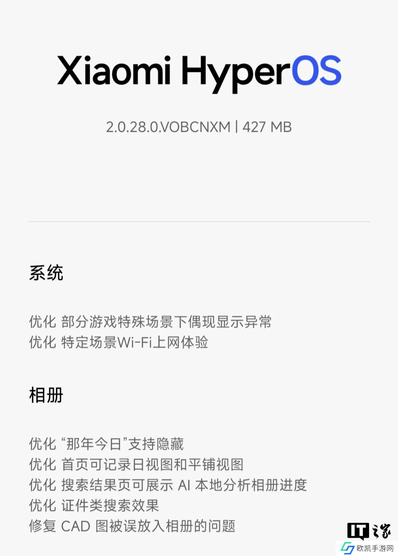 本站 12 月 18 日消息,小米 15 Pro 手机今日获推澎湃 OS 正式版内测更新(需正式版内测资格),版本号 OS2.0.28.0.VOBCNXM。