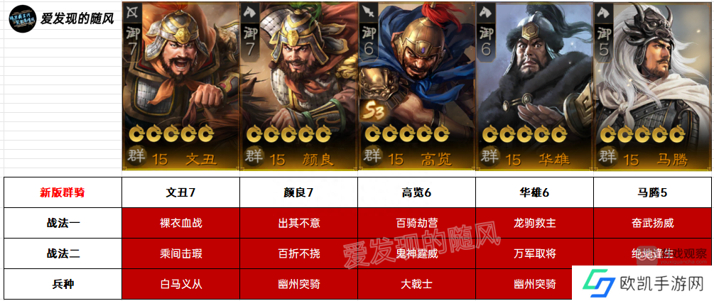 2、高览加入后,群骑的组队选择更多了,原本群雄6御只有一个华雄比较契合群骑有些尴尬,现在可以组77665的队伍了。由高览、文丑、颜良三人有【河北四将】的缘分,能在前2回合使2名随机敌军造成伤害降低20%,提供了一些防御能力。