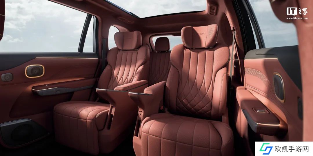 该车标配空气悬挂 + CDC,超级魔毯悬架融合激光雷达,支持城市 NDA、高速 NDA、自动泊车等。车内配有双 17.3 英寸巨幕屏,以及全 24 通道前后三分频音响、零重力湾流座椅。