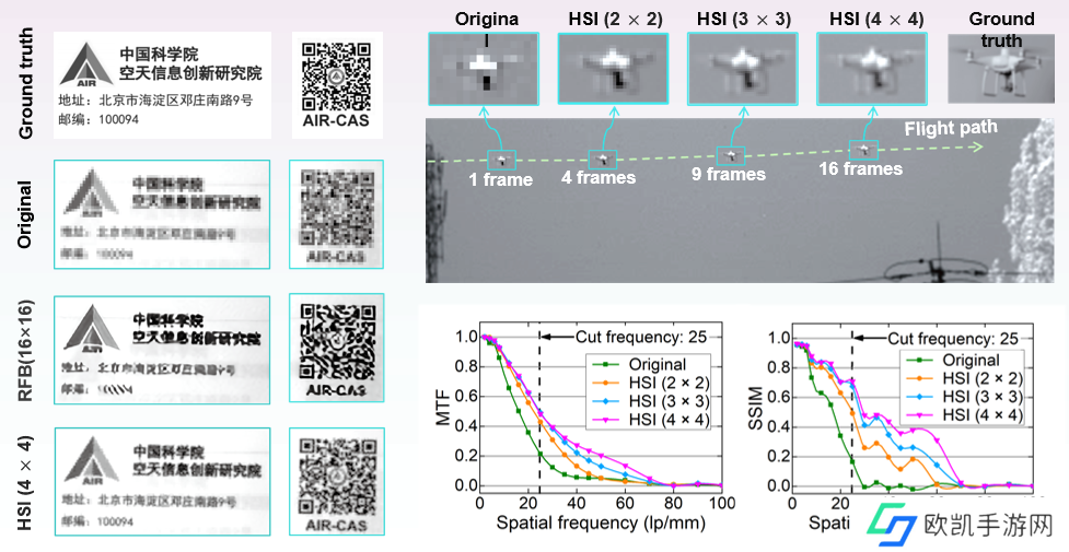 在实现原理上,空天院科研团队采用稳态激光技术扫描数字图像传感器,通过稳态光场表达式和输出图像矩阵的关联关系,精确求解出了图像传感器像素内量子效率分布。当使用相机拍摄动态目标,或者移动相机拍摄静态场景时,利用获取的像素内量子效率和像素细分算法,即可以突破原始像素分辨率,实现超采样成像。据悉,稳态激光技术是由该团队首创的锋芒稳态激光技术演化而来,在原理上具有极稳定的光场形式。
