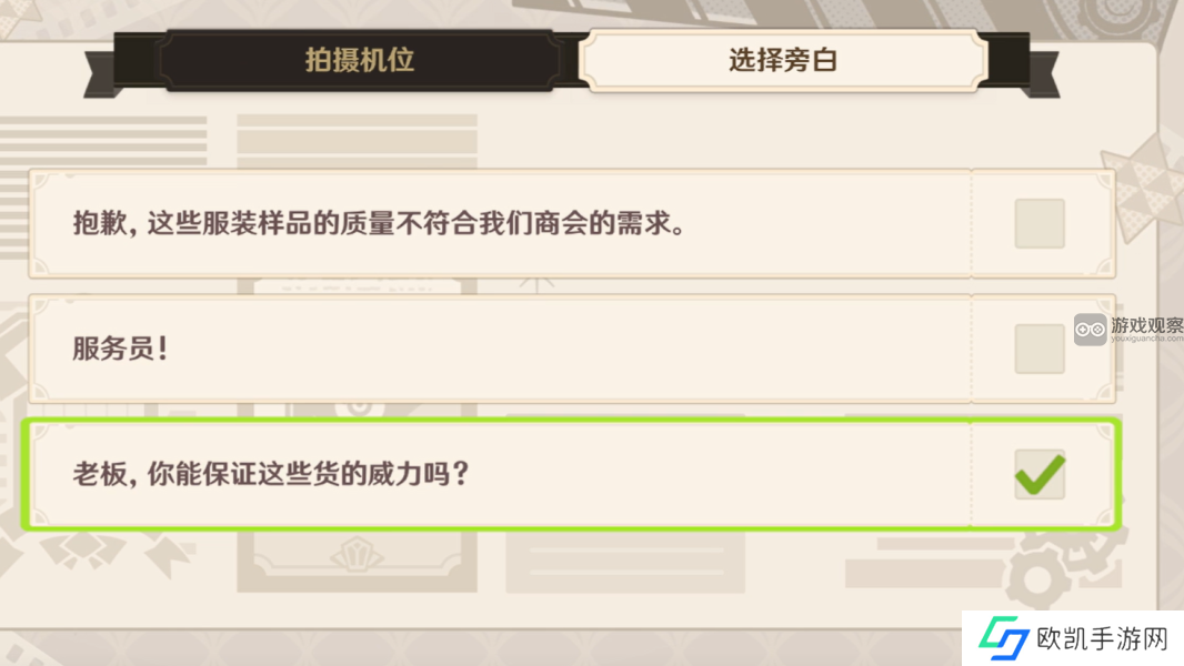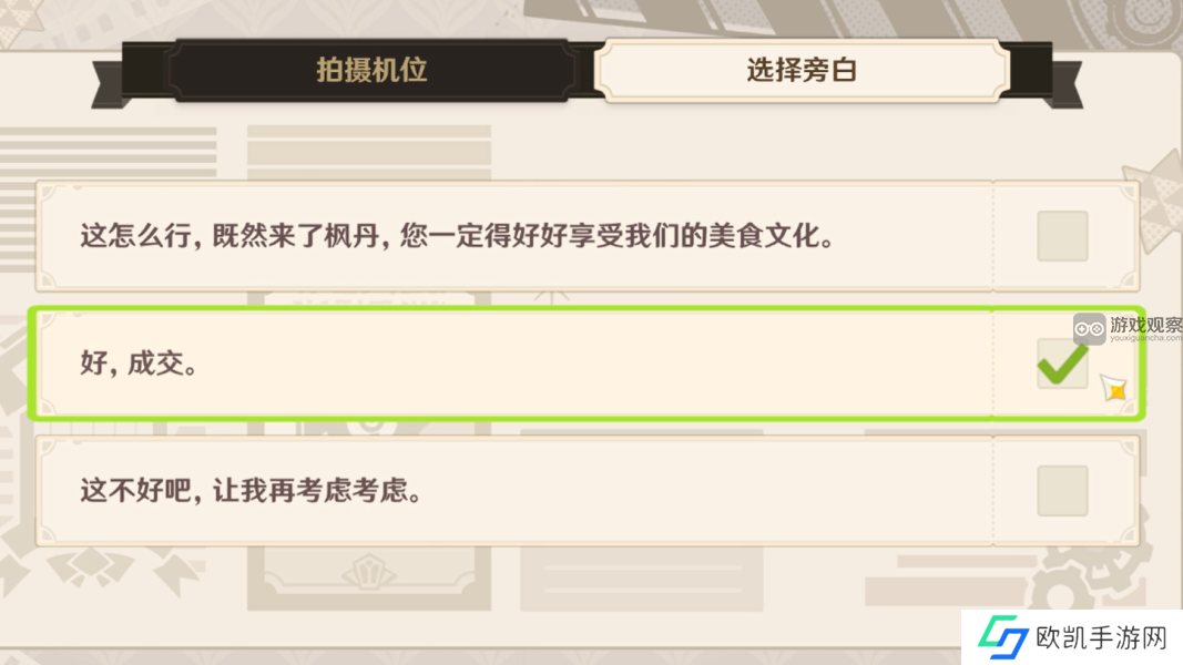 原神一场交易是巧像入帧第三关,需要我们拍摄来到枫丹的烟花商(宵宫饰)与客户(里凯蒂饰)相约在德波大饭店商谈销售事项。仔细考察过样品后,客户认可了烟花商的产品,二人达成交易。下面就来一起看看正确答案是什么吧!