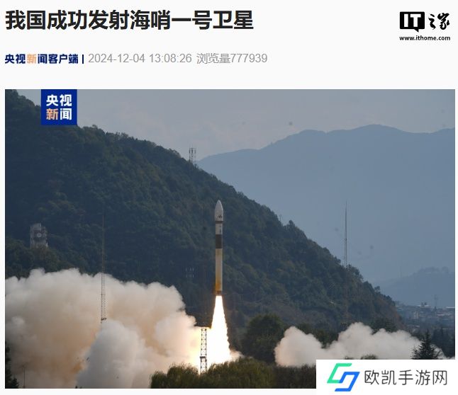 本站 12 月 4 日消息,据央视新闻报道,我国今日在西昌卫星发射中心使用快舟一号甲运载火箭,成功将海哨一号卫星发射升空,卫星顺利进入预定轨道,发射任务获得**成功。