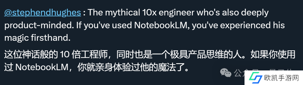 在拉姐看来,休斯是一位传说级的 10 倍工程师。而 NotebookLM 的巨大成功证明,他也是一位极具产品思维的工程师。