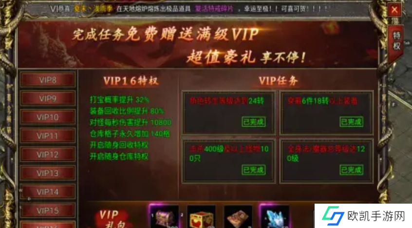 1. 在没有特戒和技能套装属性的影响下,通常VIP8就足以满足一般需求。