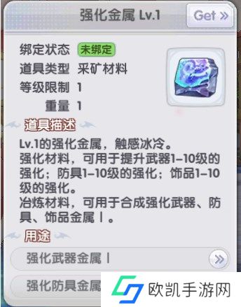 虽然不同等级的强化金属所需的原材料有所不同,但是所有原材料都是来自“采矿”和“钓鱼”这两种生活技能。