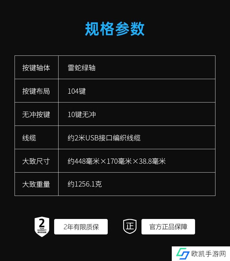 该键盘拥有磨砂表面、ABS 材质类肤图层键帽,内置蓝色动态背光、logo 发光灯效,同时拥有专用的游戏模式。