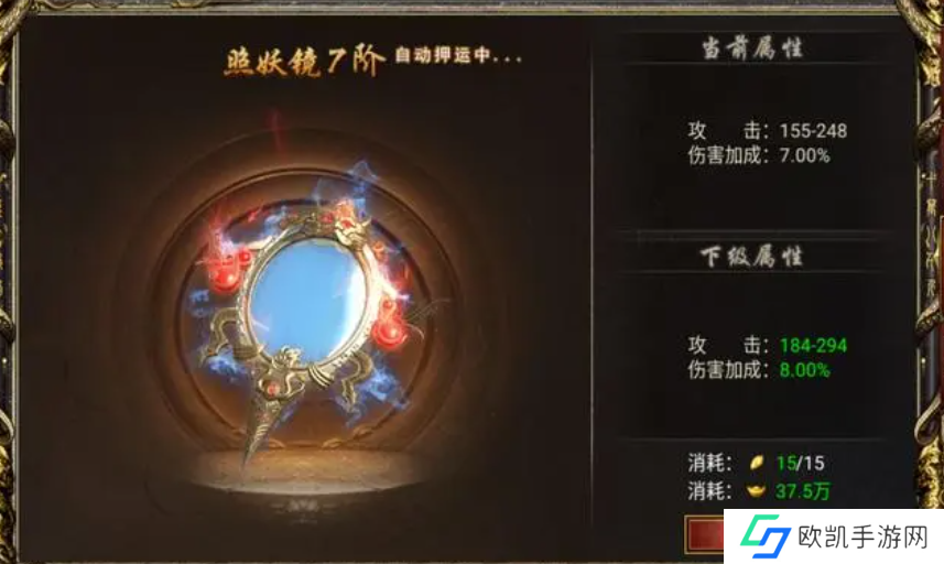 要提升照妖镜的属性,玩家需要不断投入兑金精华和元宝,进行升级。随着等级的提升,照妖镜的攻击属性和伤害加成也会相应增加,为玩家在战斗中提供更强大的支持。
