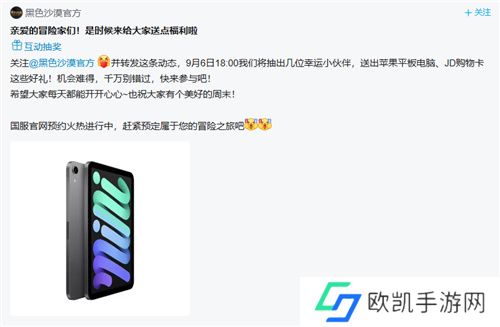 为了庆祝国服公测定档,《黑色沙漠》也不间断的在社交平台、游戏社区中送出各种实物奖品,未来《黑色沙漠》国服承诺将继续加大福利力度,为每一位玩家带来更多的惊喜与回馈。有兴趣的玩家可以持续关注黑沙的B站官方账号、微信公众号及游戏圈动态,以便第一时间获取最新的福利信息与游戏资讯,携手共赴这场盛大的冒险之旅,在《黑色沙漠》的广阔世界中留下辉煌足迹!