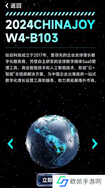 钛动科技携手W4馆Liftoff,传音移动互联,PayPal贝宝,共同打造耳目一新的VR巡展小程序,更准备了airpods、Switch、乐高赛车、Oraimo Open Ear等众多惊喜礼品等你领回家!接下来就跟随着钛动号启程,带您抢先体验本次星际穿越之旅吧!
