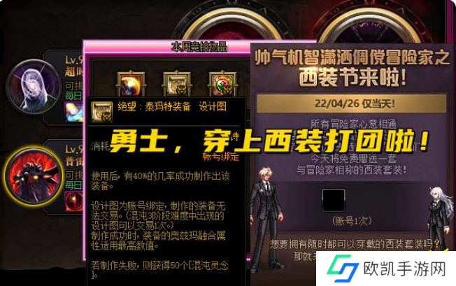 备受玩家们期待的DNF游戏将于4月21日进行一次全区全服的停机更新,随着新版本的更新,dnf官网也迎来了很多惊喜活动,很多玩家都想知道dnf成功人士西装套装外观怎么样?dnf成功人士西装套装怎么获得?dnf天纵云霄稀有装扮外观?今天小编就带来dnf成功人士西装套装外观,感兴趣的小伙伴一起来了解一下吧!