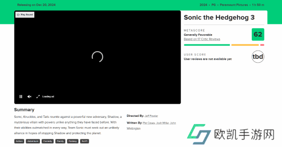 《刺猬索尼克3》的媒体评价近日解禁,截至发稿时,其在各大专业网站上的平均评分为62分。共有17家媒体参与了评价,其中10家给出了正面评价,好评率达到了59%;而6家则给出了中等评价。尽管这部电影的主演都是真人演员,但他们在片中的角色并不多,这一点并没有成为它的缺点。