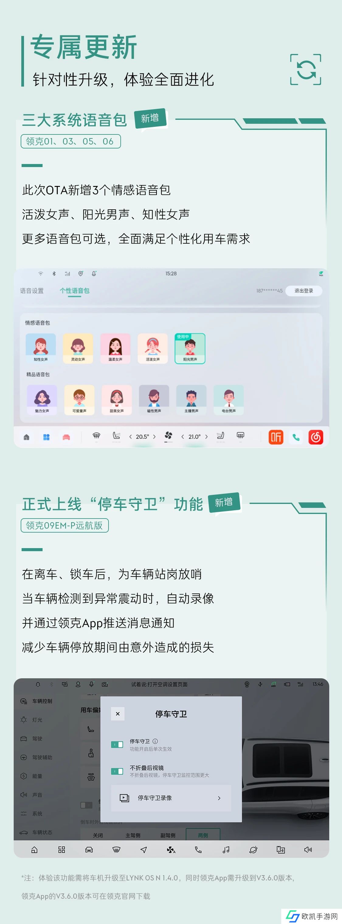 领克 01、03、05、06 车型新增 3 个情感语音包(活泼女声、阳光男声、知性女声)