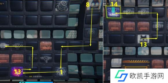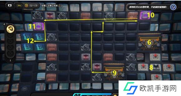 6、8区域上下左右4个控制机关,可以控制9机械移动,将9机械按照下图路线,依次拿了10和11区域的奖励后,进入12区域即可
