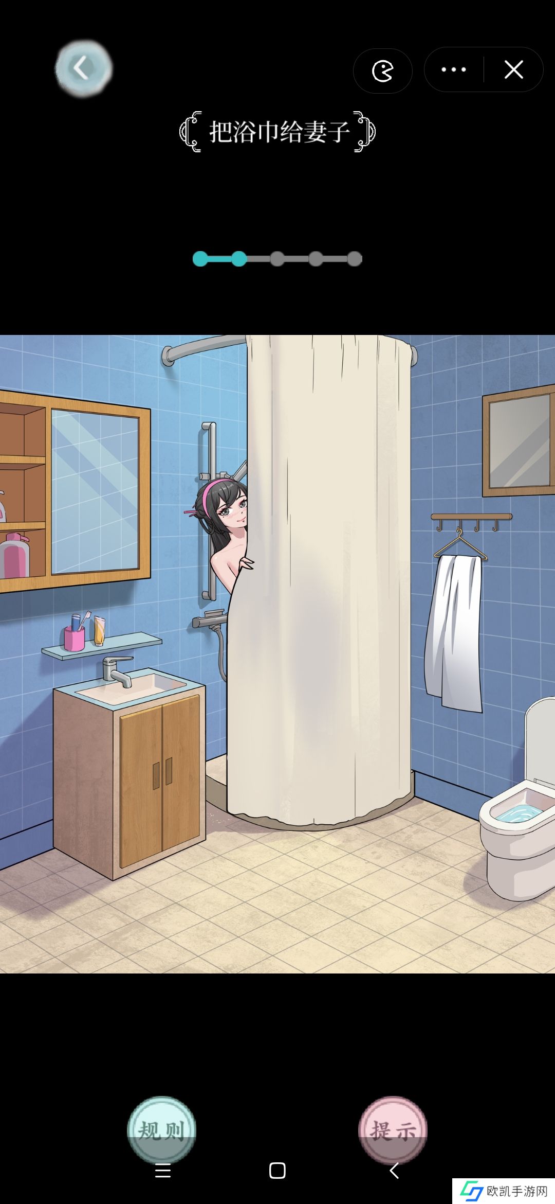 2、第二节·把浴巾给妻子:拖动妻子头上的发夹到洗手台上,然后把浴巾拖给她,进入下一场景