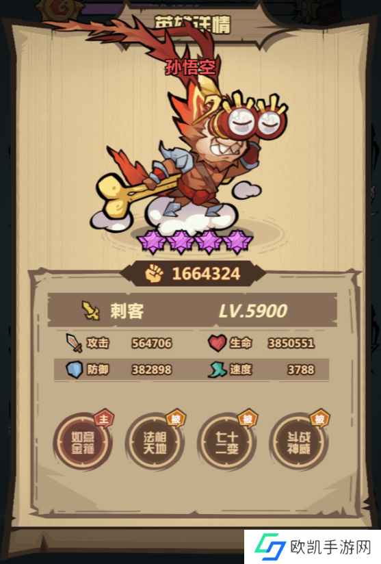 孙悟空在竞技场战斗中是非常惊艳的存在,主动技能「如意金箍」有着高额单体伤害,加上被动百分比暴击加成,使其能够轻松越级击败大部分主将阵容。全套技能的爆发下来,一般坦克都很难招架。