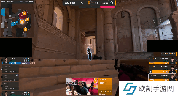 来到长枪局Liquid三二夹B,虽然第一波没能打开突破,好在随后Twistzz与ultimate两人补枪成功,顺势占领包点后稳稳守住包点拿下胜利,最终以13-5拿下胜利。