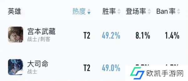 T2梯队:宫本武藏、大司命、元流之子坦克、云中君、司马懿、兰陵王、曜、百里玄策、云缨、哪吒、李白