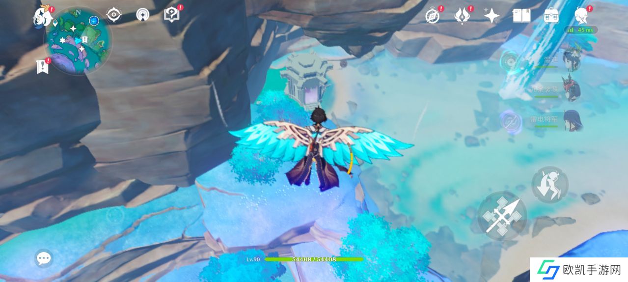 珊瑚宫的雷神龛位于无相之水的下方,建议玩家从左边的传送锚点处过来,在飞行下落到图片指示区域就能看到(旁边有小机器人守着)