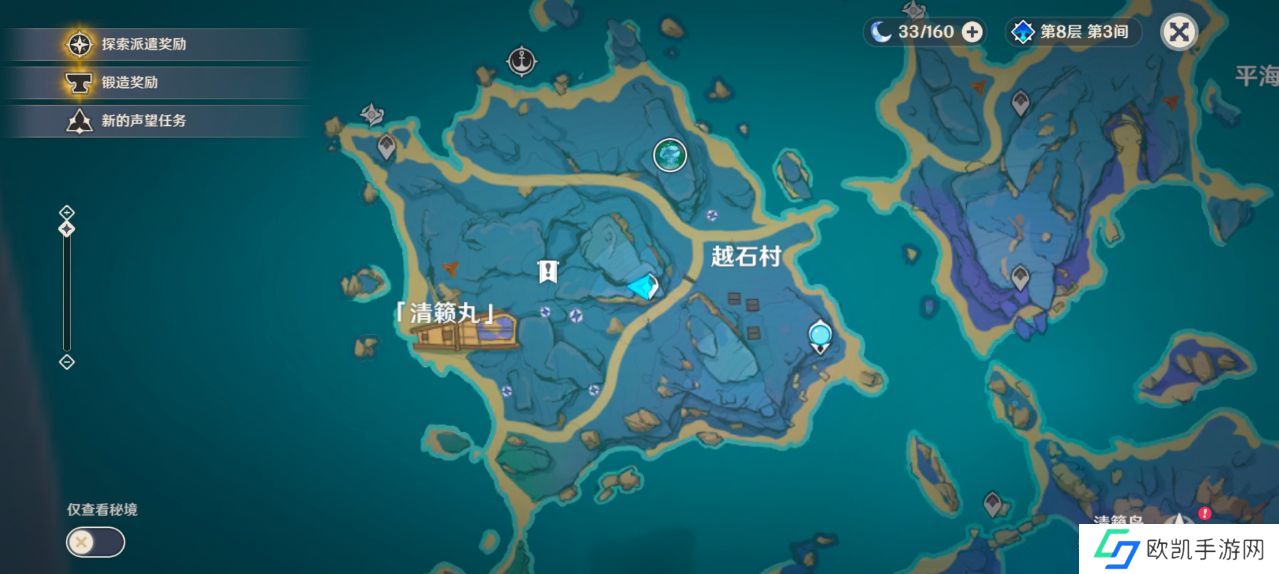 位于玩家一开始登录稻妻城的七天神像左上方处,玩家可以乘坐小船到这里解锁(这里附近有小怪出没)