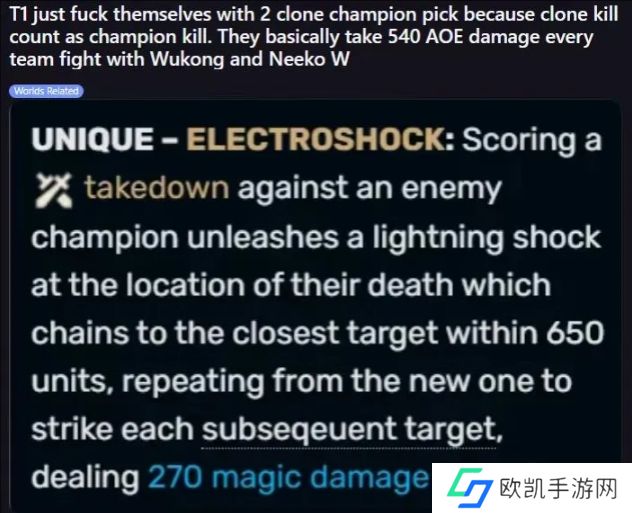 Reddit也有网友讨论的这个事情,T1在对阵TES比赛里选择了两个有假身的英雄(猴子和妮蔻)。