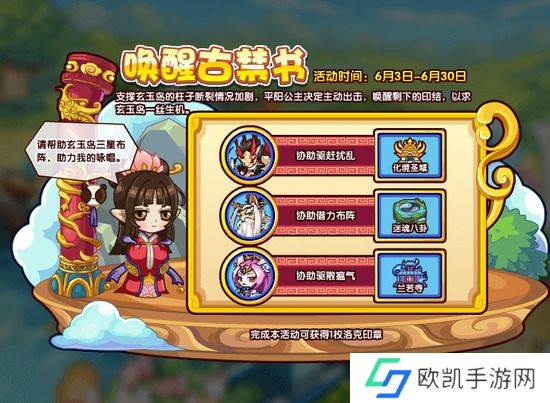 1、由于支撑玄玉岛所用的柱子,发生了断裂需要进行修复;2、平阳公主选择唤醒其他的印结,成功守护岛屿;3、具体活动时间在:6月3号到6月30号,自由体验;4、前往云海古道进行探索冒险,获取更多的奖励;5、本次活动可以获取的是:培养果实以及洛克印章。