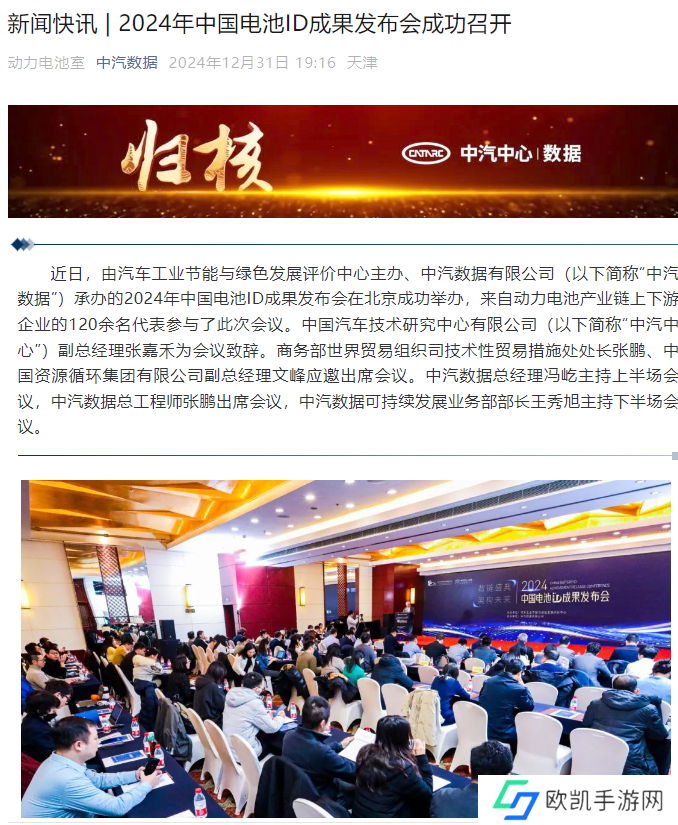 本站 1 月 1 日消息,由汽车工业节能与绿色发展评价中心主办、中汽数据有限公司承办的“2024 年中国电池 ID 成果发布会”于12 月 26 日在北京召开。
