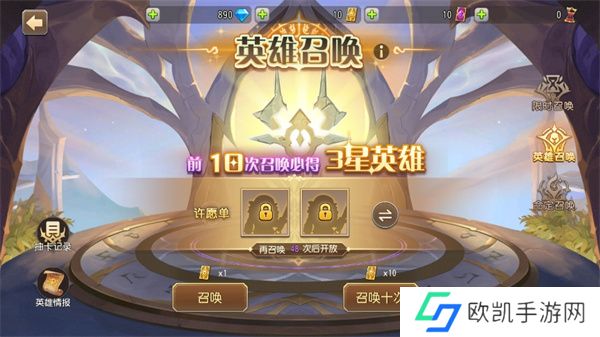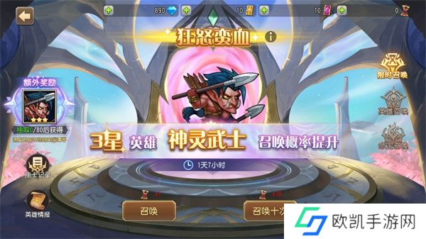在限时召唤中,每进行80次召唤,将至少获得一名初始3星英雄,且有50%的概率为当期新英雄。