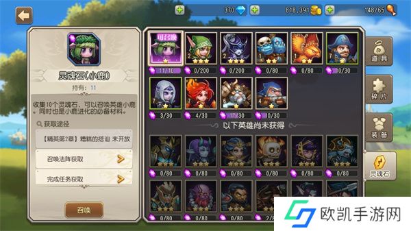 收集到一些相同的灵魂石可花费金币来召唤英雄。