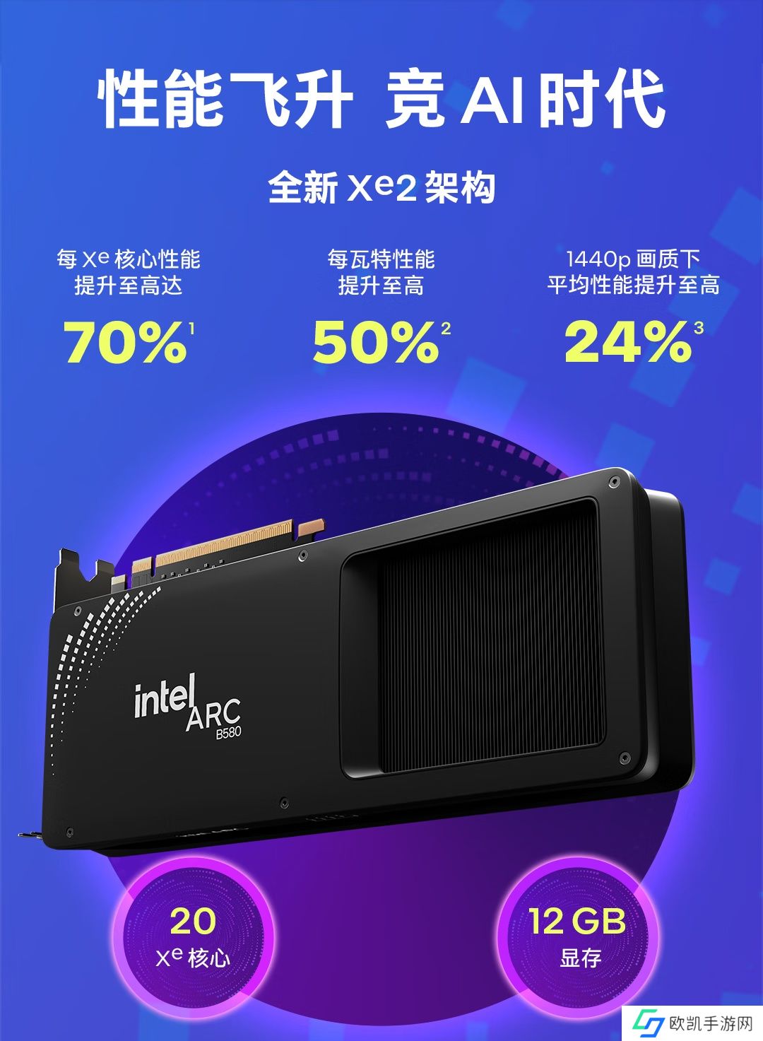 京东英特尔(Intel)锐炫 B5802049 元直达链接英特尔锐炫 B580 基于台积电 N5 工艺打造,采用了 20 个 Xe2 核心、12G(192bit 19Gbps GDDR6)显存,频率 2670MHz,可提供 233 TOPS 算力,功耗仅有 190W。
