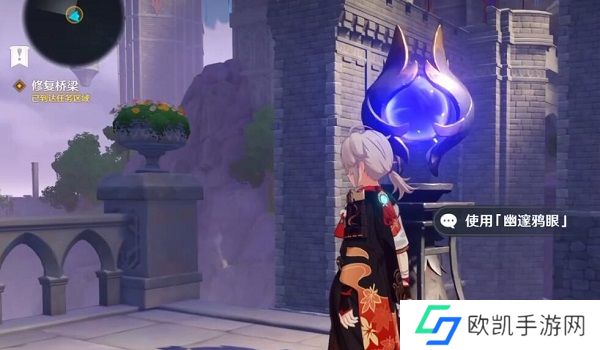 原神幽夜默示录其二修复桥梁是这个任务中比较复杂的一个解密,它利用了视觉错位的系统,将不同位置的东西观察的时候放在一起,就可以将原本不在这里的物体移动到对应位置从而修复桥梁了。