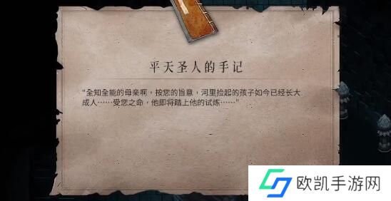 解锁:第一次重新开始游戏后,在门口处的老者旁边有一个宝箱,击碎后掉落【平天圣人的手记】