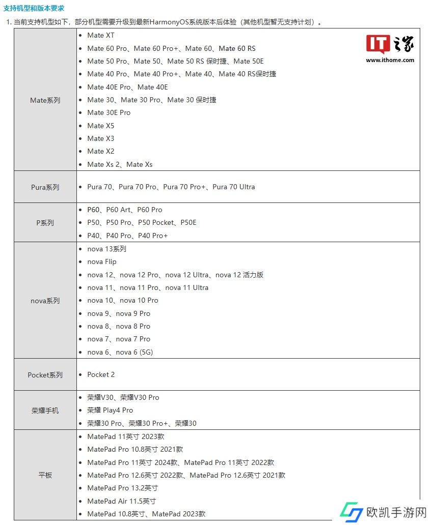 需要注意的是“空间音效”功能与“空间音频”存在差异。该功能适配机型如下(其他机型暂无支持计划):
