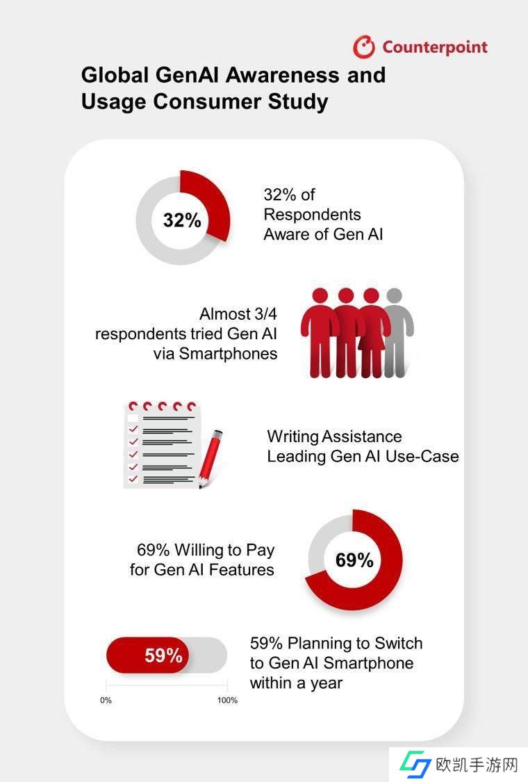12 月 24 日消息,市场调查机构 Counterpoint Research 最新调查显示,生成式 AI(Gen AI)正在迅速改变智能手机市场格局。消费者对 AI 功能手机兴趣浓厚,美国市场尤为突出,这预示着 Gen AI 手机的普及浪潮即将到来。