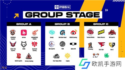 将24支队伍分成3个组进行,每组8支队伍,根据之前进行的PGS3赛制一致,按照排名依次以"蛇形"分布方式进行了编组。 因此,Petrichor Road、WEIBO GAMING、Four Angry Men在B组,NH-ESPORTS 和17Gaming在C组,PCL赛区队伍被分为2个小组分别进行小组比赛。